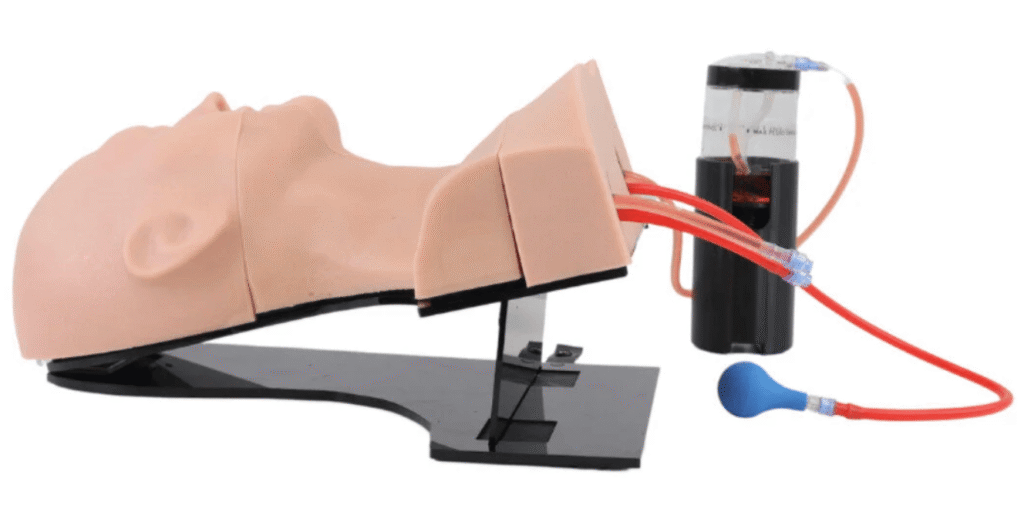 Simulateur TruCorp pour cricothyroïdotomie d’urgence en traumatologie.