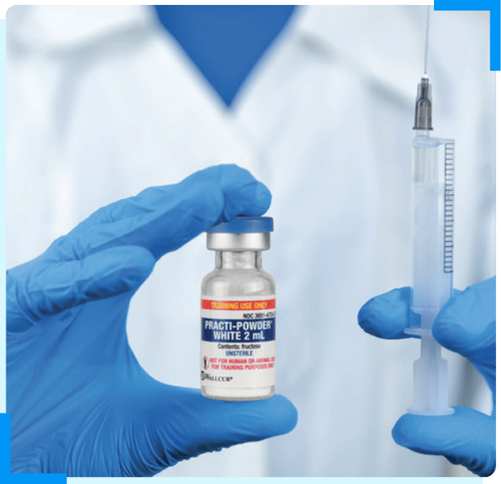 Wallcur propose des flacons et ampoules d’entraînement reproduisant fidèlement les médicaments utilisés au quotidien. Idéal pour apprendre la reconstitution et la manipulation.